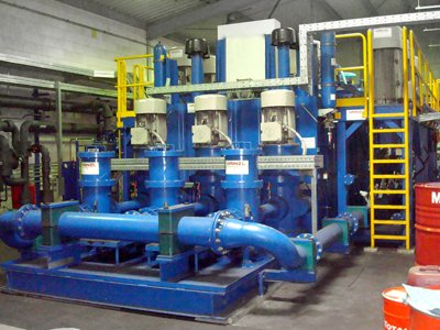 Mit unserem 8.000L Tank und den dazugehörigen Doppelpumpen versorgen wir den Pressentyp HVP 2000. Mit unserem auf der Anlage verbauten Hauptpressenbock erreichen wir die Kategorie 4 im Bereich Pressensicherheit, dieser Garantiert leckfreies Halten im oberen Totpunkt und kann im Eilgang bis zu 450mm/s verfahren.