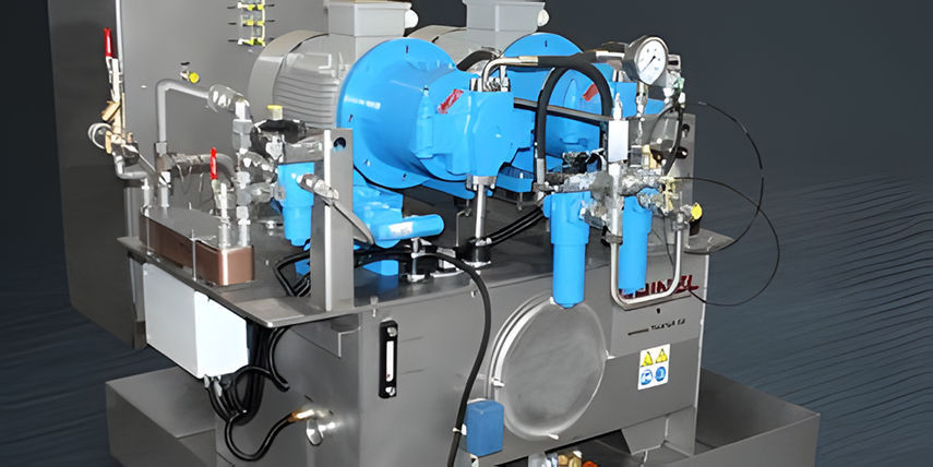 Das Aggregat besteht aus einem 250 Liter Edelstahltank. Die Motor-Pumpeneinheiten, die Filtrierung und Kühlung sowie alle Meßgeräte und Ventile sind auf dem Behälter aufgebaut. Sämtliche E-Geräte (ausgenommen die beiden Elektromotoren) sind in einem Zwischenklemmenkasten verdrahtet. Ebenfalls im Lieferumfang war 1 Ventilschrank aus Edelstahl worin die entsprechenden Ventileinheiten aufgebaut sind.