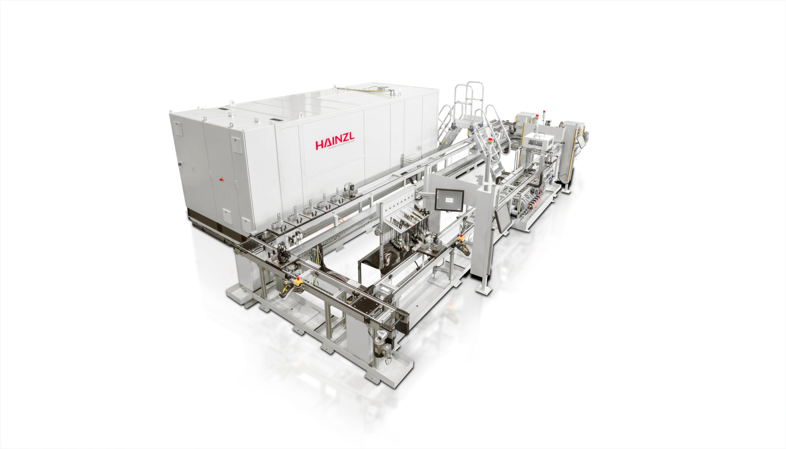 The test bench tests the function of electrohydraulic steering units. It consists of a pump station for testing the hydraulic functions and a test station for ensuring the electrical parameters. The conveyor connects the pump station with the test station and thus ensures automated handling of the test items. The parameters of the test can be set via the integrated control system. For documentation purposes, a test protocol is generated and the test results are stored in the database.