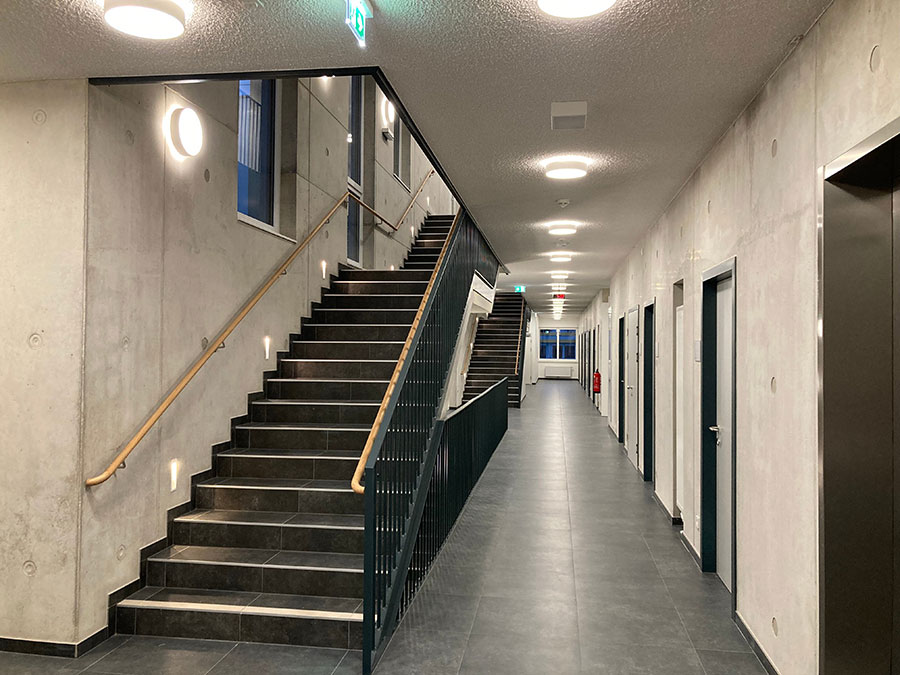 Our scope of services included the low-voltage main distribution, the lighting technology including emergency and safety lighting, a UPS and fire alarm system, the intercom system, the network cabling as well as the clock system and the cabling of the media technology. In addition, HAINZL Gebäudetechnik was responsible for the KNX BUS system, the public address system for evacuations, the emergency power generator, the lightning protection system and the e-charging stations.